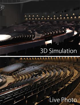 ステージ装飾から座席のレイアウト、会場の内装までを、リアルに再現した高品位のCGシミュレーションです。
